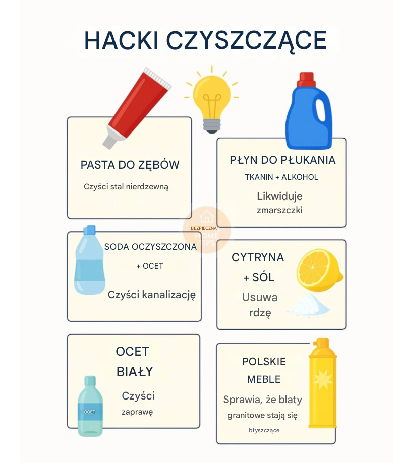 Utrzymanie domu w czystości nie musi być ani skomplikowane, ani ryzykowne dla zdrowia. Dzięki kilku prostym, bezpiecznym i jednocześnie niezwykle skutecznym sposobom sprzątania możesz zadbać o porządek bez użycia agresywnych detergentów. Wiele naturalnych lub łagodnych produktów, które już posiadasz w domu, potrafi zdziałać cuda podczas czyszczenia trudnych miejsc. W tym artykule znajdziesz 11 praktycznych, sprawdzonych metod, które pomogą Ci utrzymać świeży, pachnący i higieniczny dom – w sposób przyjazny dla środowiska i Twojego zdrowia.