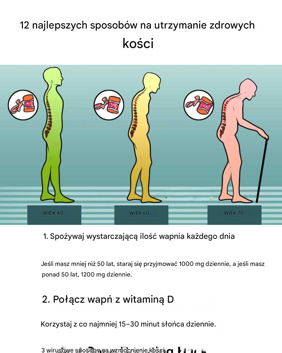 Niezależnie od tego, czy masz czterdzieści kilka lat i chcesz zapobiec przyszłym problemom, czy jesteś po siedemdziesiątce i zależy Ci na zachowaniu sprawności oraz samodzielności, drobne zmiany w codziennym stylu życia mogą przynieść ogromne korzyści. Odpowiednia dieta, ruch oraz świadome nawyki pomagają wzmocnić kości, ograniczyć ich utratę i poprawić jakość życia na długie lata.