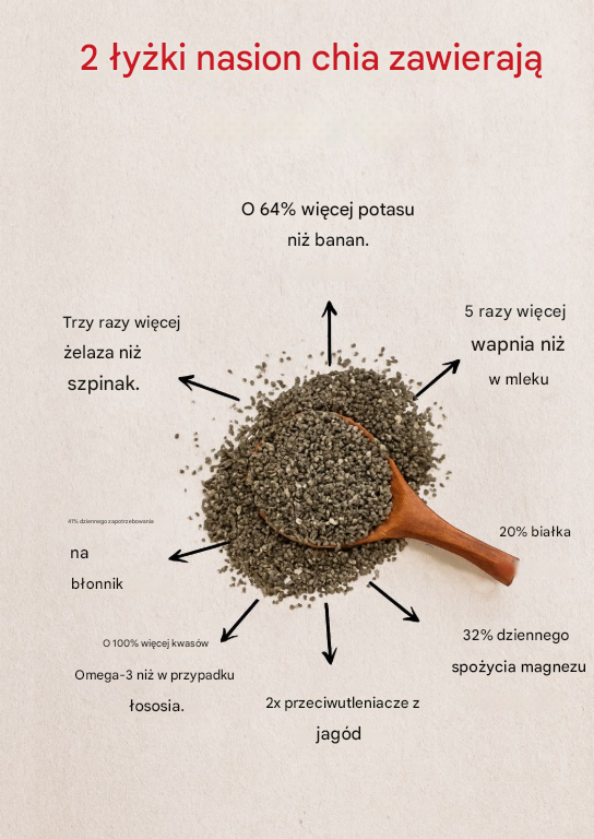 Chia to niewielkie nasiona, które po kontakcie z płynem pęcznieją i tworzą charakterystyczny żel. Dzięki temu są sycące, łatwe do łączenia z innymi składnikami i wyjątkowo uniwersalne. Ich neutralny smak sprawia, że pasują zarówno do dań słodkich, jak i wytrawnych.