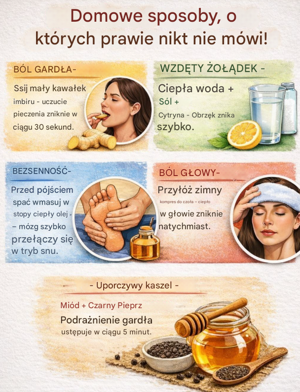 Są to sposoby łatwe do zastosowania, niewymagające specjalnych przygotowań ani skomplikowanych składników. Choć wiele osób o nich nie pamięta, w praktyce potrafią przynieść realną ulgę.