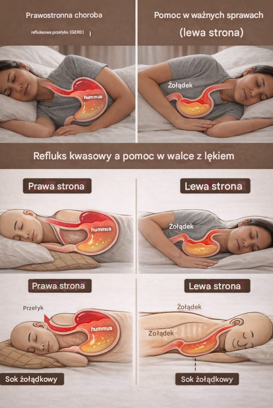 Ponad 70% dorosłych kilka razy w tygodniu budzi się zmęczonych, nawet po przespaniu całej nocy. Możesz przestrzegać zasad higieny snu, unikać ekranów przed snem, a mimo to wstawać z łóżka z uczuciem ciężkości, „mgły” w głowie lub wzdęć. Najbardziej frustrujące jest to, że większość osób nigdy nie zdaje sobie sprawy, iż tak prosta rzecz jak strona, na której śpisz, może po cichu wpływać na trawienie, poziom energii, a nawet długofalowy komfort organizmu.