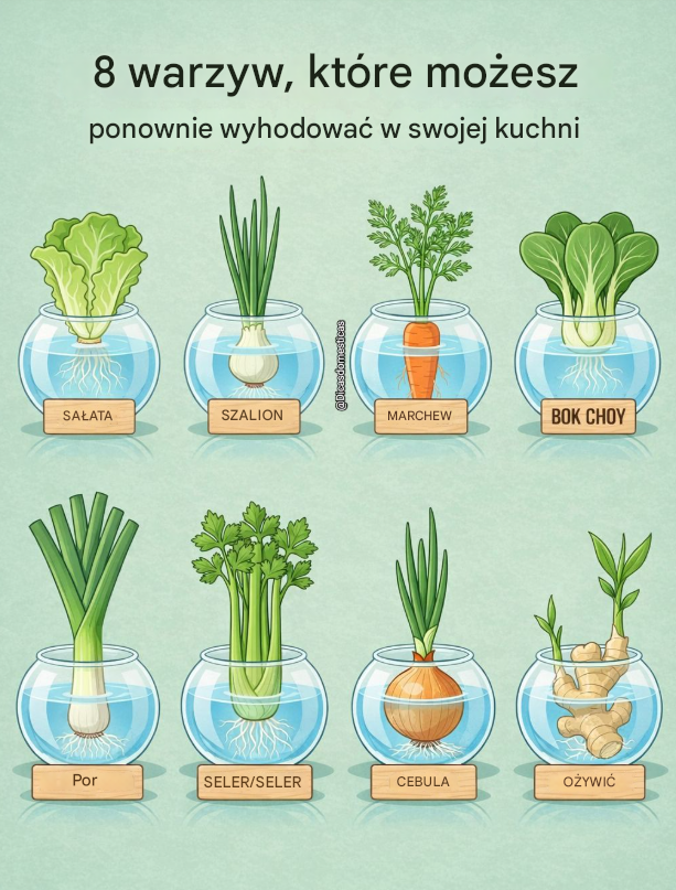 Proces jest prosty i naprawdę działa, jeśli przestrzega się kilku podstawowych zasad. Większość warzyw zaczyna wypuszczać nowe pędy już po kilku dniach.