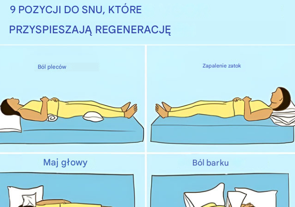 Dobra wiadomość jest taka, że niewielkie zmiany – czasem tak proste jak odpowiednie ułożenie ręcznika lub zmiana strony, na której śpimy – mogą znacząco poprawić komfort nocnego odpoczynku. Poniżej znajdziesz dziewięć pozycji snu i prostych wariantów ułożenia ciała, które mogą wspierać regenerację i pomóc lepiej dopasować sen do potrzeb Twojego organizmu.