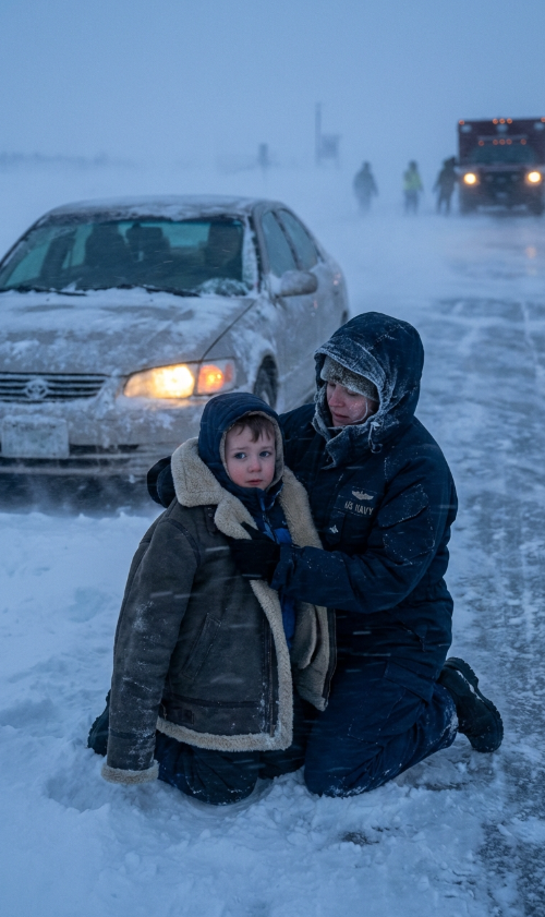 Jej samochód nie był po prostu unieruchomiony — był martwy, lodowato zimny, w ten sposób, który od razu zdradza, że ktoś siedział w nim zbyt długo, bez nadziei na szybkie rozwiązanie.