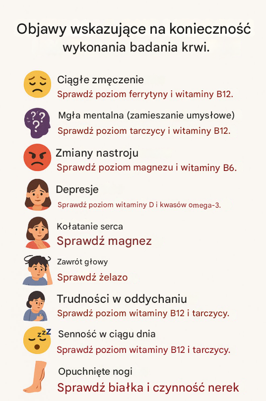 Masz wrażenie, że od dawna coś jest nie tak, ale ciągle to odkładasz? Przewlekłe zmęczenie, rozkojarzenie czy nagłe zmiany nastroju często bywają bagatelizowane. Tymczasem w wielu przypadkach nie są one „wymyślone” ani wyłącznie efektem stresu. To mogą być sygnały, że organizm – a dokładniej krew – wysyła wyraźne ostrzeżenia.