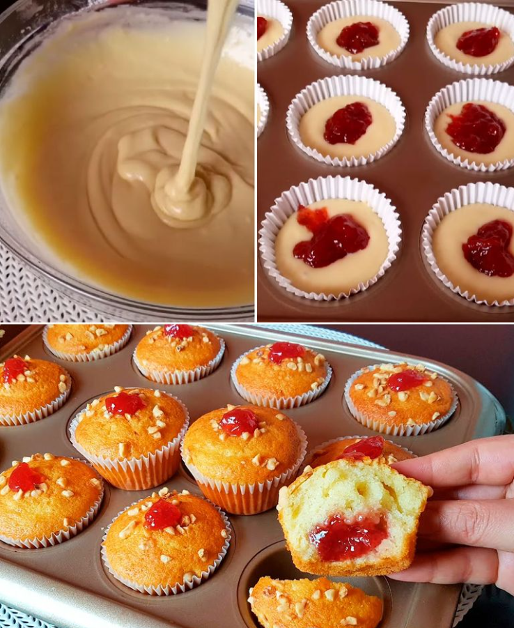 Zanim zaczniesz, upewnij się, że dżem jest gęsty, aby nie spływał podczas pieczenia babeczek. Zrób również mały test smaku ciasta, aby dostosować ilość cukru do słodyczy dżemu. Miłego pieczenia!