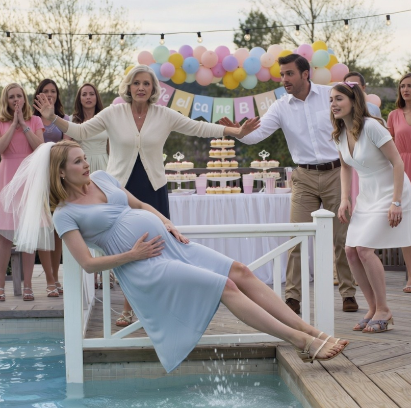 Lorraine stała sucha przy basenie, udając szok. Jedną rękę miała przyłożoną do piersi, a Trevor trzymał ją za łokieć, jakby to ona była ofiarą.