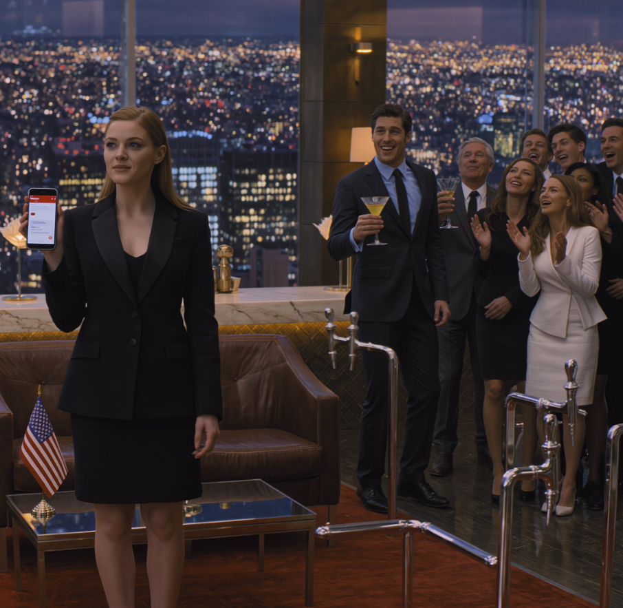 Uniósł kieliszek, przyciągnął uwagę całego prywatnego lounge’u i powiedział wystarczająco głośno, by wszyscy słyszeli: „Możemy nagrodzić moją młodszą siostrę? Nadal bezrobotna, nadal szuka siebie”. Sala wybuchła śmiechem. Ktoś zagwizdał, ktoś inny krzyknął „Przemówienie!”, a ktoś przy barze rzucił: „Tryb obserwatora kariery”.