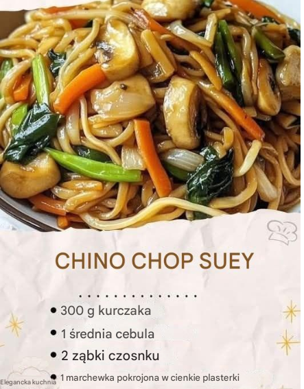 Chop suey chino to jedno z tych dań, które łączą w sobie prostotę przygotowania, szybkość wykonania oraz ogromną elastyczność w doborze składników. To klasyczne danie w stylu azjatyckim doskonale sprawdza się zarówno jako codzienny obiad, jak i jako efektowny posiłek przygotowany w pośpiechu po długim dniu. Dzięki krótkiej obróbce cieplnej warzywa pozostają chrupiące, mięso soczyste, a całość spaja lekki, aromatyczny sos.