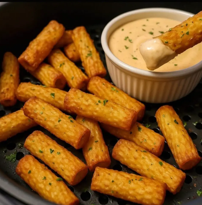 Dzięki frytkownicy powietrznej makaron zyskuje idealnie złocistą, chrupiącą strukturę bez konieczności użycia dużej ilości tłuszczu. Wystarczy kilka przypraw, odrobina oliwy i parmezan, aby stworzyć przekąskę idealną na spotkania ze znajomymi, wieczór filmowy lub szybkie chrupanie w ciągu dnia. Podawane z ulubionym dipem – na przykład kremowym sosem chipotle – znikają z miski w kilka minut.