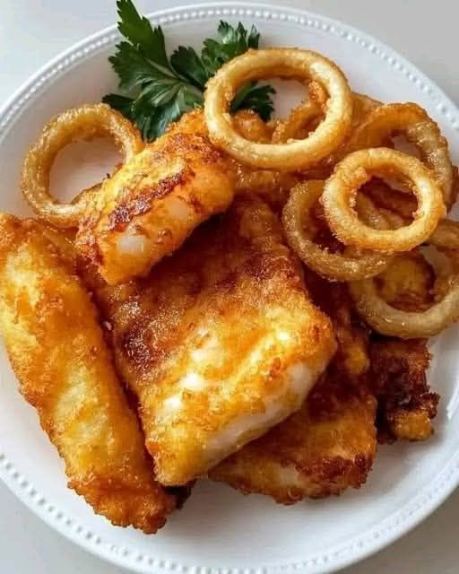 Chrupiący dorsz z złocistymi krążkami cebulowymi – hit na każdy stół