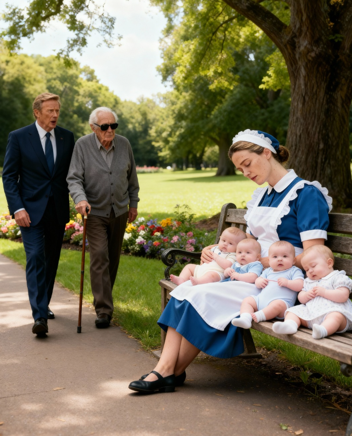 Przemierzali plac powoli, mijając studentów, pracowników biur i rodziców pchających wózki, aż coś niezwykłego przykuło uwagę Aarona. Na ławce w pobliżu starej kamiennej fontanny, częściowo ukryta w cieniu klonu, leżała kobieta ubrana w wyblakły, lawendowy uniform roboczy. Nie sam strój jednak przyciągnął jego wzrok, lecz sposób, w jaki ledwie obejmował drobne sylwetki przyciśnięte do jej ciała.
