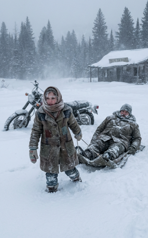 Burza połknęła świat na długo, zanim ktokolwiek pomyślał o szukaniu ocalałych. Gdzieś przy zapomnianym odcinku drogi numer 27, tam gdzie sosny pochylały się do środka niczym świadkowie, którzy widzieli zbyt wiele, dziesięcioletnia Lena Holloway ciągnęła drewniane sanki przez śnieg tak gęsty, że wydawał się żywy, opierający się jej przy każdym kroku i szepczący groźby w podmuchach wiatru wyjącego jak ranne zwierzę.