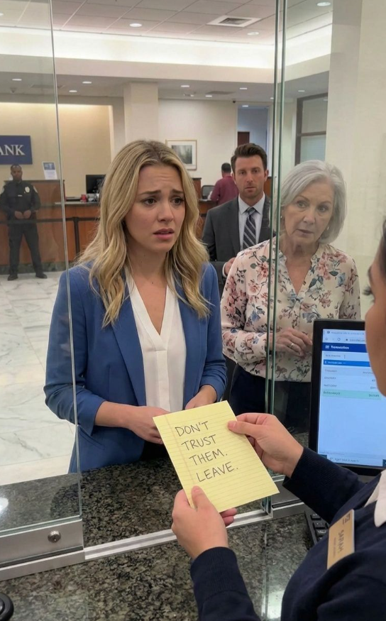 Patricia wsunęła czek i formularz wpłaty pod szybę. „Na nowe konto wspólne” – poleciła tonem nieznoszącym sprzeciwu. – „Moja synowa jest bardzo przytłoczona, więc ja zajmę się terminalem PIN”.