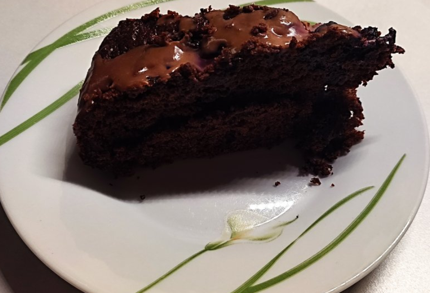 Ciasto jest wilgotne, aromatyczne dzięki kakao i cynamonowi, a dodatek miodu oraz powideł śliwkowych nadaje mu głębi smaku. Jagody na wierzchu przełamują słodycz i sprawiają, że wypiek wygląda lekko i apetycznie.