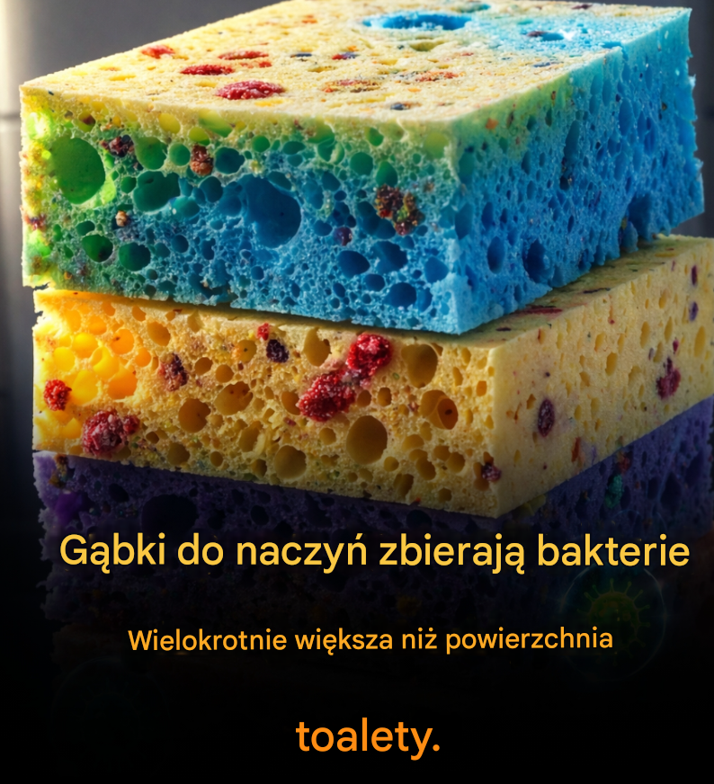 Badania wskazują, że w jednej gąbce kuchennej może znajdować się nawet około 10 milionów bakterii na każdy cal kwadratowy jej powierzchni. Dla porównania, na desce sedesowej wykrywa się przeciętnie zaledwie około 50 bakterii. Oznacza to różnicę sięgającą nawet dwustu tysięcy razy.
