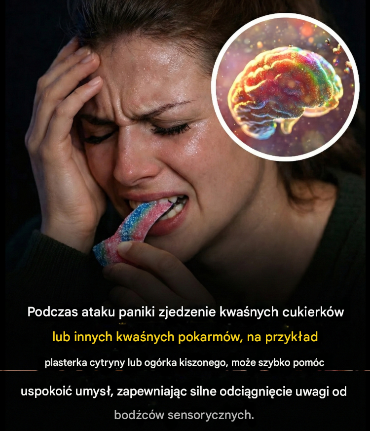 Intensywne bodźce sensoryczne – a w szczególności bodźce smakowe – aktywują obszary mózgu odpowiedzialne za natychmiastowe przetwarzanie wrażeń zmysłowych. W efekcie dochodzi do chwilowego obniżenia aktywności struktur związanych z reakcją strachu, takich jak ciało migdałowate. To właśnie te obszary odpowiadają za gwałtowne reakcje „walcz albo uciekaj”, charakterystyczne dla napadów paniki.