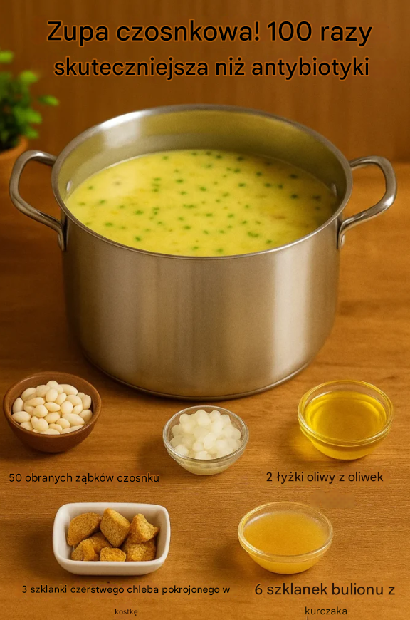 Czosnek – główny bohater tej receptury – od dawna uznawany jest za dar natury. Znany ze swoich właściwości antybakteryjnych, przeciwwirusowych i przeciwutleniających, wspiera odporność organizmu i pomaga mu radzić sobie z infekcjami. W tej zupie jego intensywność zostaje złagodzona dzięki powolnej obróbce, a smak nabiera delikatnej, niemal kremowej nuty.