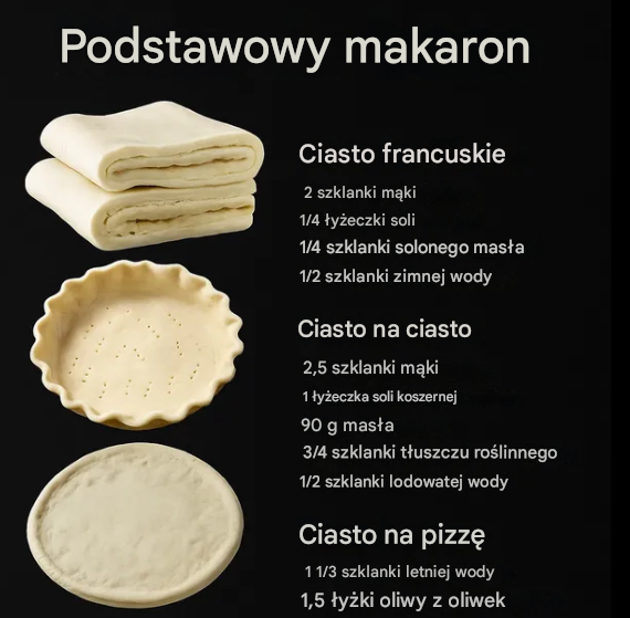 W tym kompletnym przewodniku krok po kroku znajdziesz cztery klasyczne, niezawodne rodzaje ciasta: ciasto francuskie, ciasto na tartę (na słodko lub słono), ciasto na pizzę oraz ciasto na croissanty. Każdy przepis został opisany w sposób przystępny, z dodatkowymi wyjaśnieniami i praktycznymi wskazówkami, które pomogą uniknąć najczęstszych błędów.