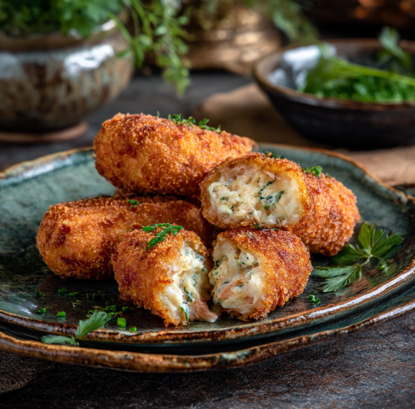 Domowe krokiety z krewetek to klasyczne danie inspirowane kuchnią francuską i belgijską, cenione za wyjątkowo kremowe wnętrze oraz chrupiącą, złocistą panierkę. Choć ich przygotowanie wymaga nieco cierpliwości, efekt końcowy w pełni wynagradza poświęcony czas. To idealna propozycja na elegancką przystawkę, rodzinny obiad lub danie na specjalne okazje, kiedy chcesz zaskoczyć gości czymś naprawdę wyjątkowym.