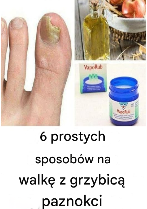 Sposób użycia: Wymieszaj równe ilości octu jabłkowego i ciepłej wody. Moczyć zainfekowane paznokcie przez 15–20 minut dziennie. Po zabiegu dokładnie osuszyć skórę i paznokcie, aby nie pozostawić wilgoci sprzyjającej rozwojowi grzybów.