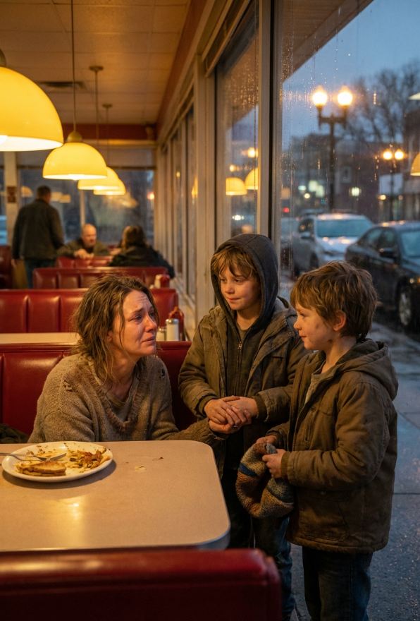 „Mam na imię Aiden, a to jest Milo” — powiedział spokojnie. „Zatrzymujemy się w schronisku przy Harbor Street. Dziś nie ma tam miejsc. Próbujemy tylko znaleźć coś do jedzenia.”