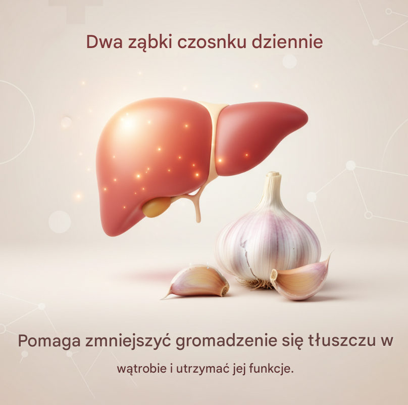 Regularne spożywanie czosnku może pomagać w zmniejszaniu gromadzenia się tłuszczu w wątrobie oraz wspierać jej prawidłowe funkcje. Dwa ząbki dziennie to ilość, która łatwo mieści się w codziennej diecie i nie wymaga wprowadzania radykalnych zmian w jadłospisie.