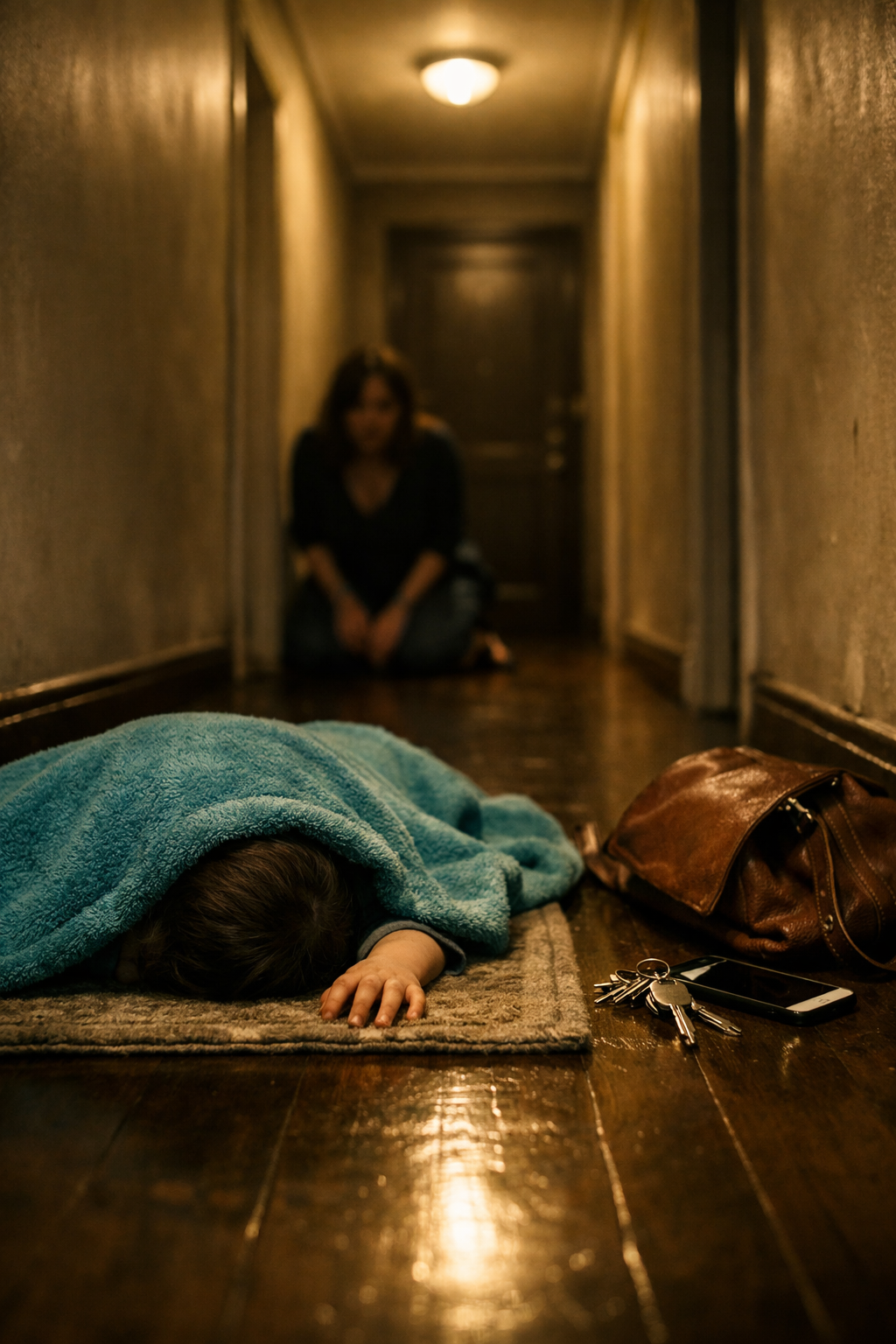 Klucze wypadły mi z ręki. Odwróciłam się, zanim zdążyłam pomyśleć. Instynkt pielęgniarki zadziałał szybciej niż rozum. W cieniu, przy listwie przypodłogowej obok drzwi starej pani Gable, leżał zwitek. Małe, zawinięte ciało w cienkim, tanim, niebieskim kocu. Materiał był wilgotny na brzegach.