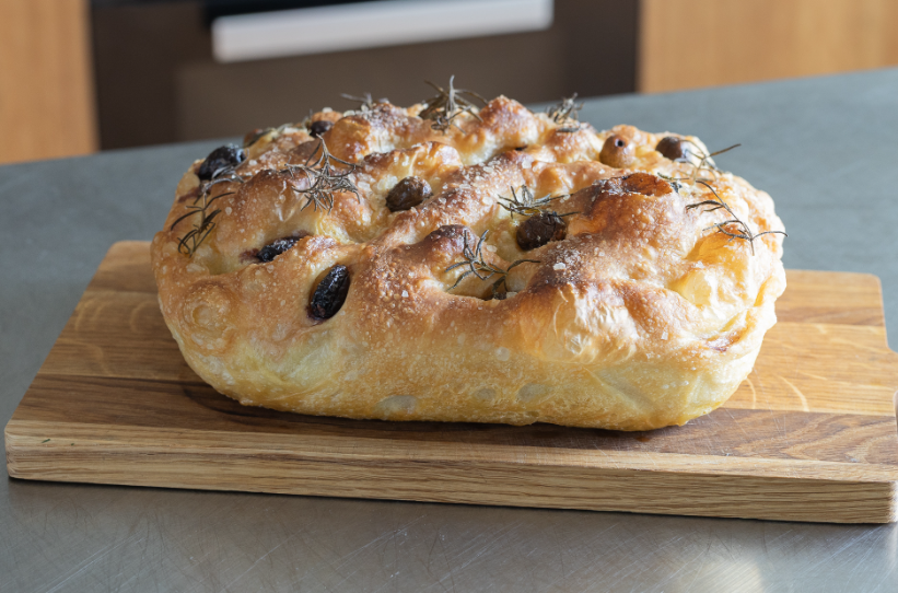 To ciasto ma wysoką wilgotność, co oznacza, że zawiera dużą ilość wody w stosunku do mąki. Dzięki temu focaccia po upieczeniu jest wyjątkowo lekka, delikatna i sprężysta. Wysoka hydracja sprawia również, że ciasto jest zbyt mokre, aby je klasycznie wyrabiać, dlatego cały proces odbywa się w misce. To idealny przykład chleba, który uczy, że dobre pieczywo nie zawsze wymaga dużego wysiłku.