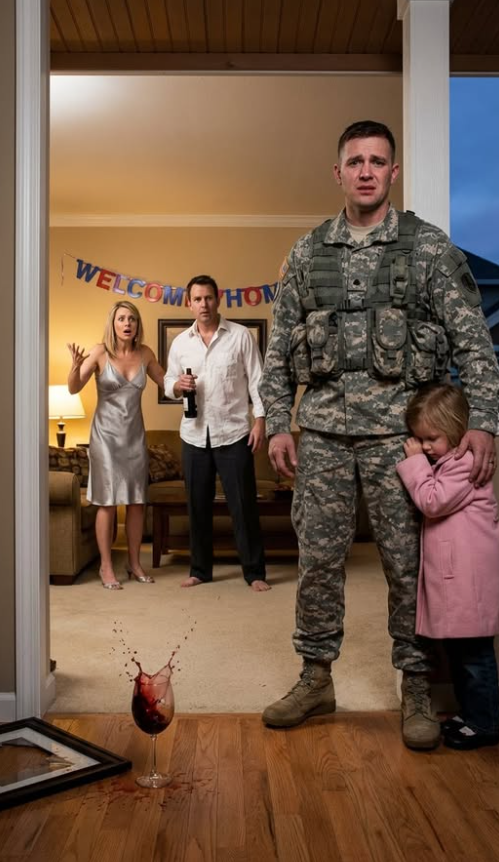 „David!” — krzyknęła Sarah, instynktownie chwytając się za gardło. Jej twarz momentalnie oblał rumieniec. „Ty… ty jesteś dziś wcześniej! My… eee… Ted tylko wpadł. Sprawdzić router. Coś się zawieszał. Po prostu… świętowaliśmy, że już działa.”