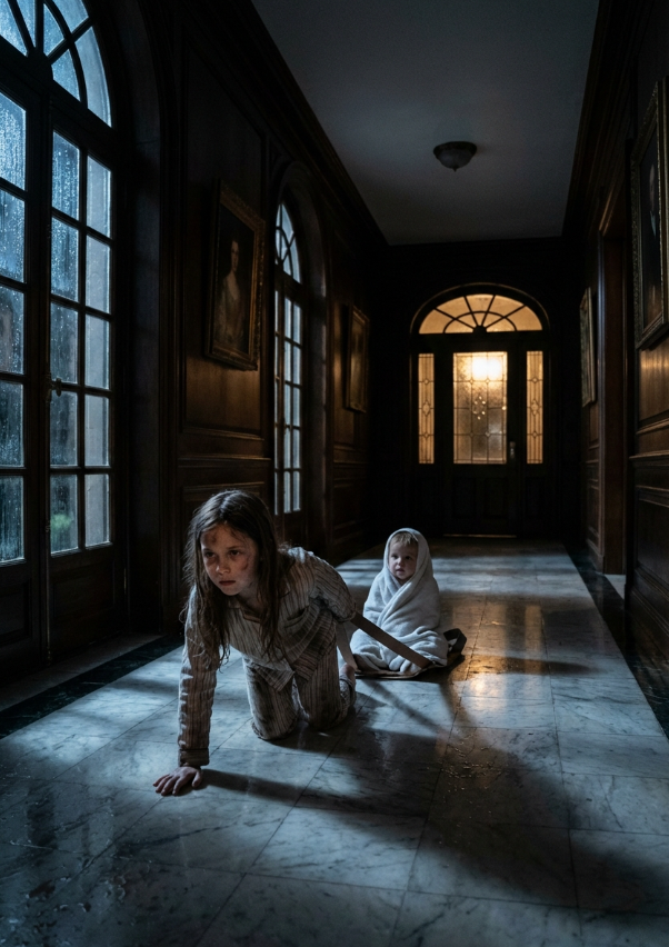 Clara pociągnęła jeszcze raz. Jej ramiona drżały gwałtownie, zęby zaciskała z bólu, którego żadne dziecko nie powinno znać. Przesuwała go centymetr po centymetrze w stronę frontowych drzwi, jakby samo światło mogło go ocalić.