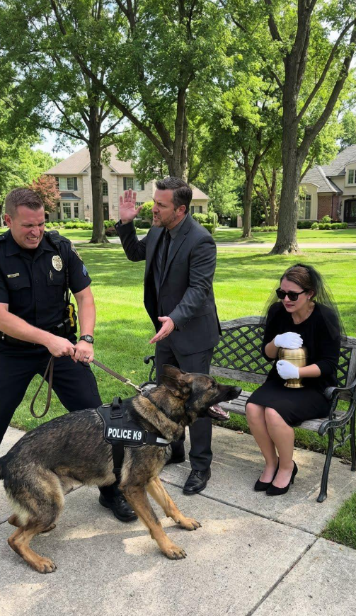 „Moja klientka jest w żałobie” — powiedział Hale, stając między Atlasem a kobietą i kładąc dłoń na jej ramieniu, jakby zaznaczał jurysdykcję. „Pański pies powoduje cierpienie”.