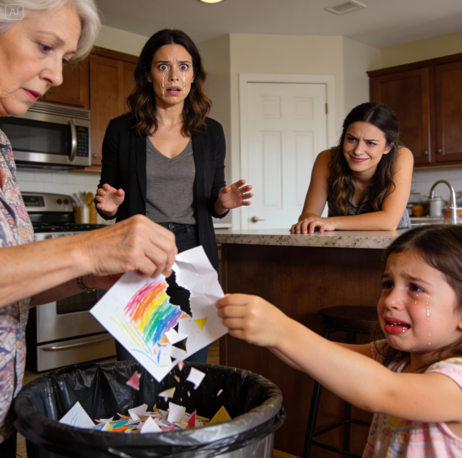 Zamiast tego uklękłam, przytuliłam Lily i powiedziałam spokojnie: „Nie zrobiłaś nic złego. Twój rysunek był piękny. Babcia podjęła złą decyzję”.