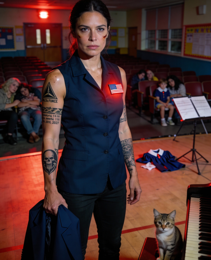 Poprawiłam granatową marynarkę, sprawdzając guziki już trzeci raz. To nie był nerwowy tik. To była kontrola taktyczna. Materiał był gruby, dobrany nie ze względów estetycznych, lecz maskujących. Pod syntetyczną tkaniną kryła się mapa mojego poprzedniego życia — ramiona pokryte tatuażami, które opowiadały historie, w jakie nikt na tej sali by nie uwierzył. Współrzędne stref zrzutu w Syrii. Daty ku pamięci kobiet i mężczyzn, którzy umierali, krzycząc moje imię. Blizny jak poszarpane błyskawice, gdzie odłamki próbowały otworzyć mnie jak suwak.