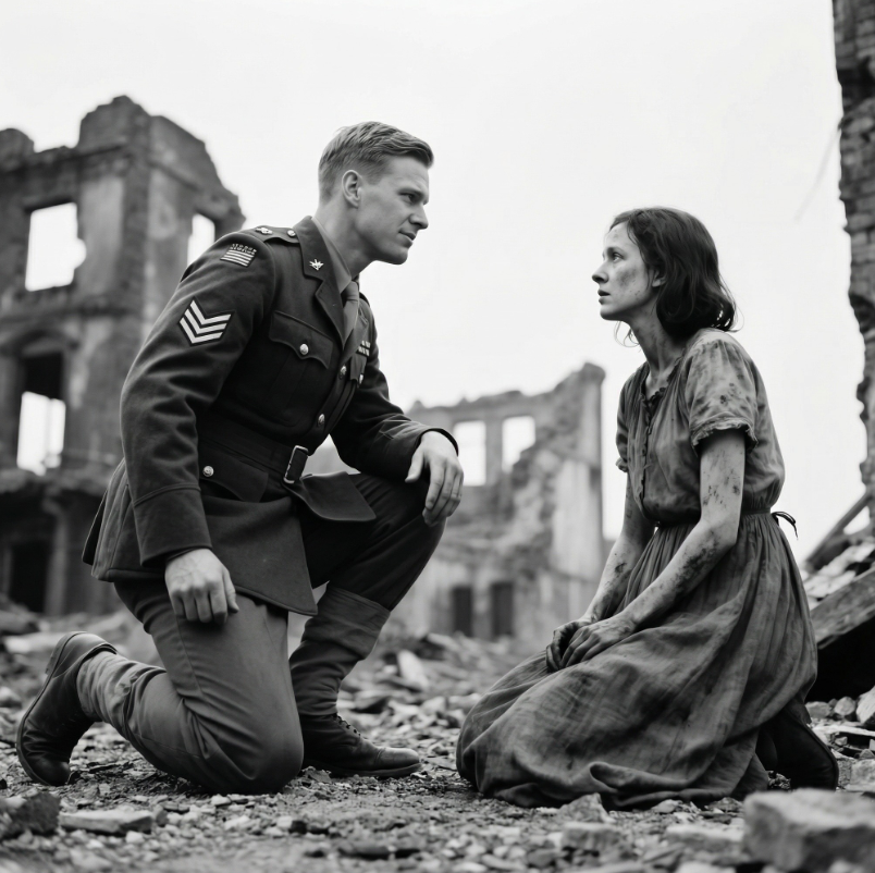Wyciągnął z plecaka rację żywnościową, przełamał ją na pół i podał. Anna zawahała się. Niemiecka propaganda uczyła ją, że amerykańscy żołnierze są brutalni i niebezpieczni. Ale głód zwyciężył. Jadła drżącymi rękami, a łzy spływały jej po twarzy.