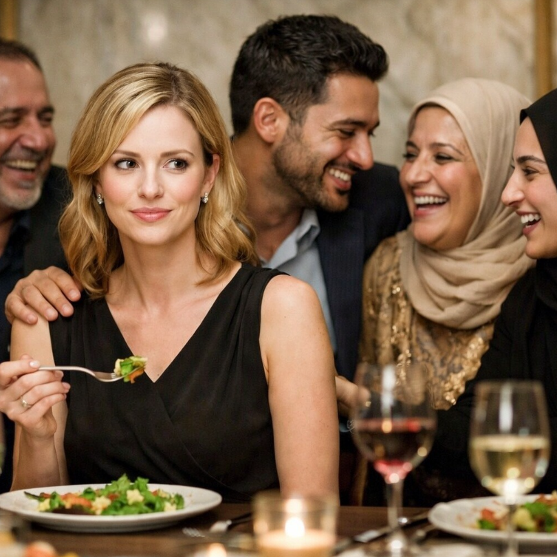 Śmiech odbijał się echem w prywatnej sali restauracyjnej, niosąc się po marmurowych ścianach. Siedziałam nieruchomo, z widelcem zawieszonym nad jagnięciną, z uprzejmym, wyuczonym uśmiechem na twarzy. Dwunastu członków rodziny prowadziło ożywioną rozmowę po arabsku — celowo mnie z niej wykluczając.