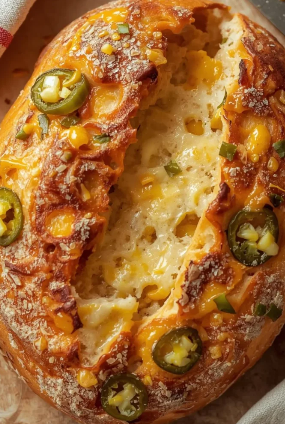 Dodatek cheddara i jalapeño sprawia, że klasyczny chleb bez wyrabiania zyskuje zupełnie nowy charakter. To połączenie smaków jest intensywne, ale jednocześnie doskonale zbalansowane.
