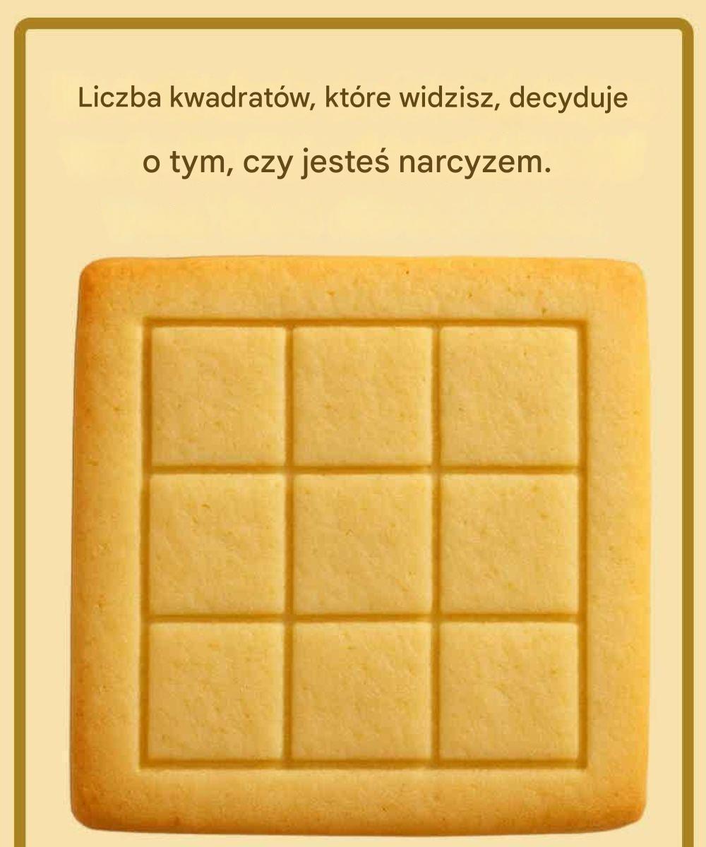 Na pierwszy rzut oka ten prosty obrazek, przypominający kratkę wyrytą w ciasteczku, wydaje się całkowicie niewinny. Kilka linii, kilka kątów prostych, nic skomplikowanego. Jednak pytanie, które mu towarzyszy – „Liczba kwadratów, które widzisz, decyduje o tym, czy jesteś narcyzem” – sprawia, że wiele osób reaguje sceptycznym uśmiechem lub przewracaniem oczami.