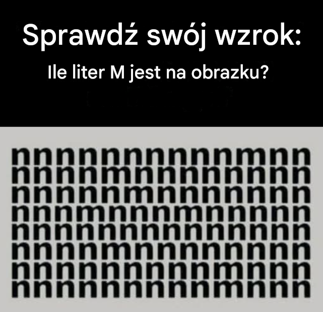 Nasz wzrok i mózg współpracują w sposób, który na co dzień bardzo nam pomaga – szybko rozpoznajemy wzorce i nie musimy analizować każdego szczegółu osobno. W łamigłówkach tego typu ten mechanizm działa jednak na naszą niekorzyść. Widząc rzędy podobnych liter, mózg „zakłada”, że wszystkie są takie same, i przestaje dokładnie je analizować.
