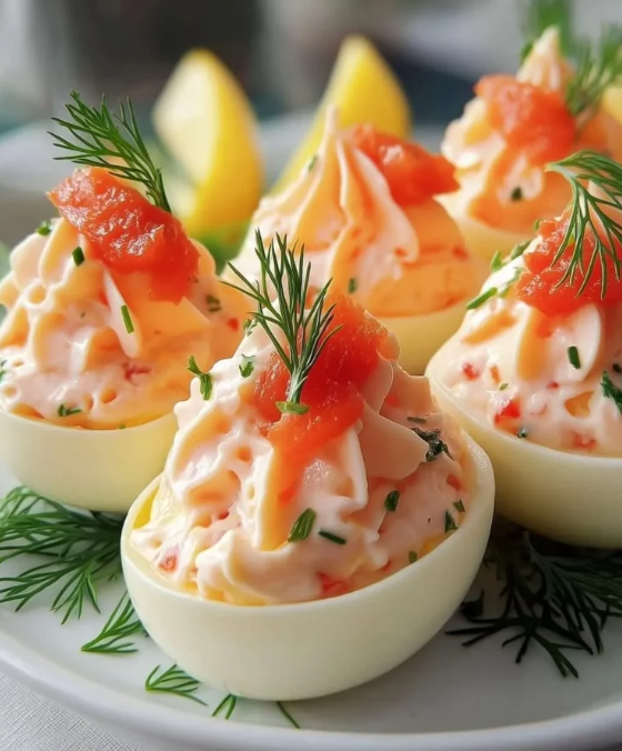Jajka faszerowane z wędzonym łososiem to elegancka i niezwykle smaczna przystawka, która łączy w sobie prostotę wykonania z wyrafinowanym efektem końcowym. Kremowe nadzienie, subtelna słoność łososia oraz świeżość ziół sprawiają, że danie prezentuje się wyjątkowo apetycznie i doskonale sprawdza się zarówno na przyjęciach, jak i podczas rodzinnych spotkań.
