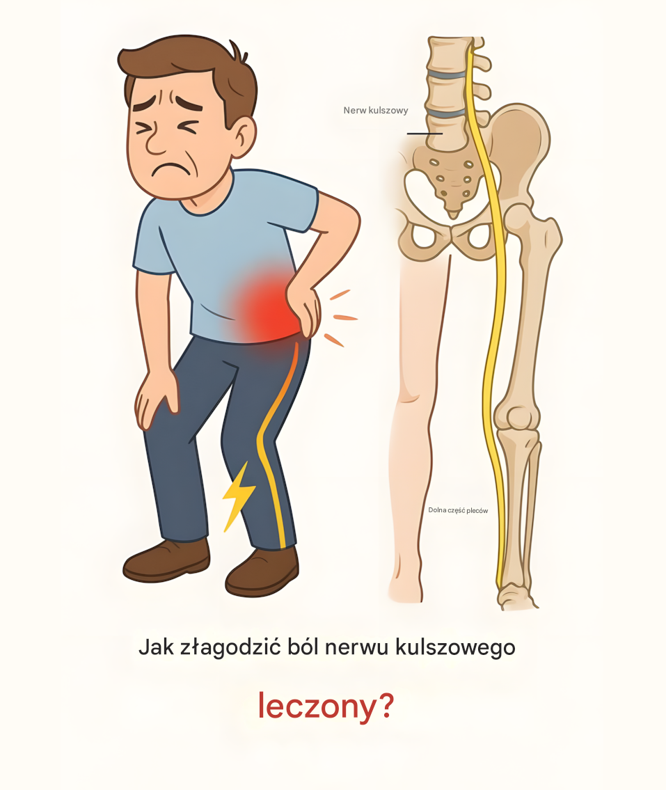 Rwa kulszowa, czyli ból nerwu kulszowego, jest jedną z najczęstszych przyczyn bólu dolnej części pleców promieniującego do pośladków, ud i nóg. Nerw kulszowy to najdłuższy i jeden z najważniejszych nerwów w ludzkim ciele – biegnie od dolnego odcinka kręgosłupa aż do stóp. Gdy zostaje podrażniony lub uciśnięty, może powodować ból o różnym nasileniu: od lekkiego dyskomfortu, przez pieczenie i mrowienie, aż po silny, kłujący ból utrudniający chodzenie, siedzenie i sen.