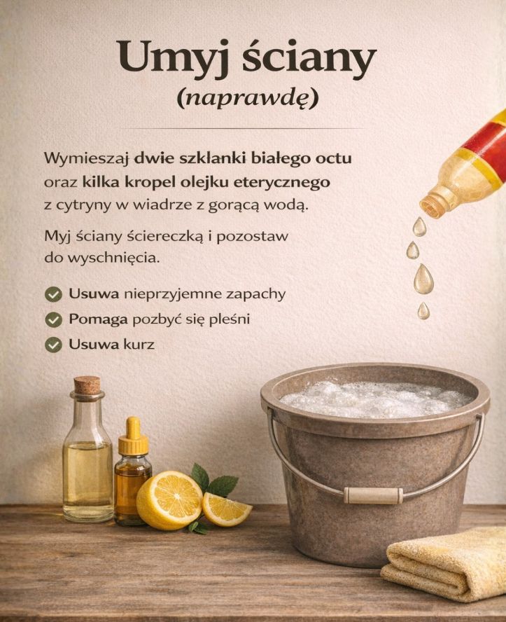 Myjesz regularnie podłogi i blaty, dbasz o porządek w kuchni i łazience… a co ze ścianami? Choć na pierwszy rzut oka mogą wydawać się czyste, to właśnie one przez cały czas zbierają kurz, pochłaniają zapachy z gotowania, dymu czy wilgoci, a w niektórych miejscach mogą nawet sprzyjać rozwojowi pleśni. Nic dziwnego — rzadko traktujemy je jako element wymagający regularnego czyszczenia.