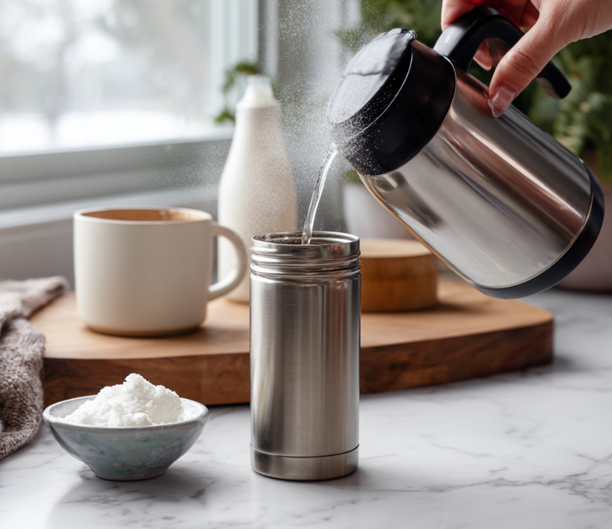 To połączenie znane jest z właściwości czyszczących i neutralizujących zapachy. Działa skutecznie, a jednocześnie jest bezpieczne dla termosu, jeśli stosujesz je z umiarem.
