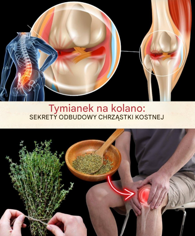 Tradycyjne zastosowania oraz współczesne obserwacje wskazują, że regularne spożywanie tymianku, a także jego stosowanie zewnętrzne, może wspomagać zmniejszenie stanów zapalnych, poprawę lokalnego krążenia oraz stworzenie sprzyjających warunków dla naturalnych procesów regeneracji chrząstki stawowej. Dzięki temu bywa on wykorzystywany jako wsparcie przy łagodnych dolegliwościach stawów, sztywności porannej czy dyskomforcie kolan związanym z wiekiem lub przeciążeniem.