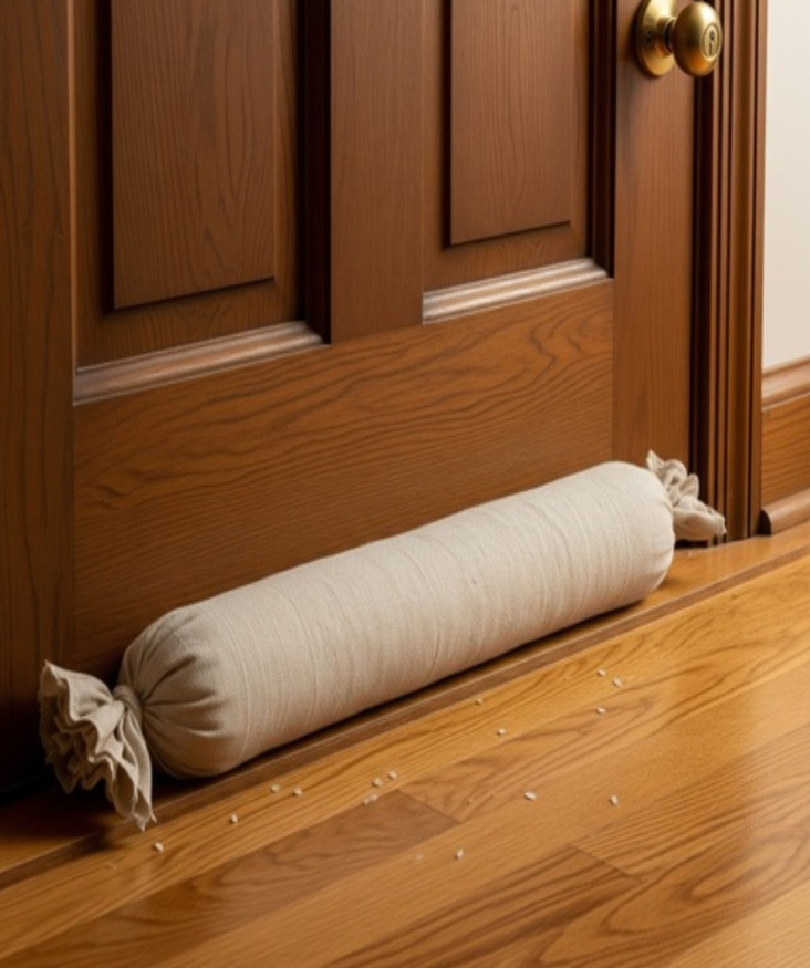 Zimą ciepło z domu potrafi uciekać dosłownie wszędzie – przez nieszczelne okna, wentylację, a bardzo często także przez dolną szczelinę pod drzwiami. Nawet niewielka przerwa o wysokości 1–2 mm może powodować wyczuwalne przeciągi, które wychładzają pomieszczenia, zmuszają do mocniejszego ogrzewania i obniżają komfort codziennego życia. Na szczęście istnieje prosta, naturalna, ekologiczna i bardzo tania metoda, by temu zapobiec: wystarczy przymocować u dołu drzwi materiałowy wałek wypełniony… ryżem.