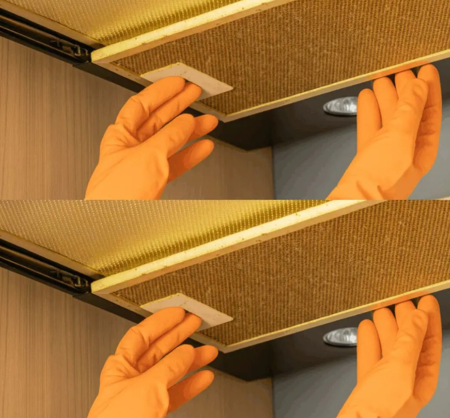 Namocz w nim ściereczkę lub gąbkę i przetrzyj powierzchnie okapu. Już po kilku ruchach zauważysz, że tłuszcz schodzi niemal natychmiast, bez konieczności intensywnego pocierania.
