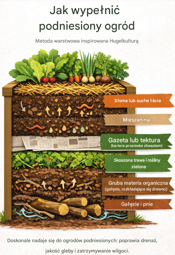 Podwyższone grządki to sprawdzony sposób na zdrowszą uprawę roślin, lepszą kontrolę nad glebą oraz wygodniejszą pielęgnację ogrodu. Jedną z najskuteczniejszych metod ich przygotowania jest wypełnianie grządki warstwami, które naśladują naturalne procesy zachodzące w przyrodzie. Taki układ sprzyja zatrzymywaniu wilgoci, poprawia drenaż i stopniowo wzbogaca glebę w składniki odżywcze.