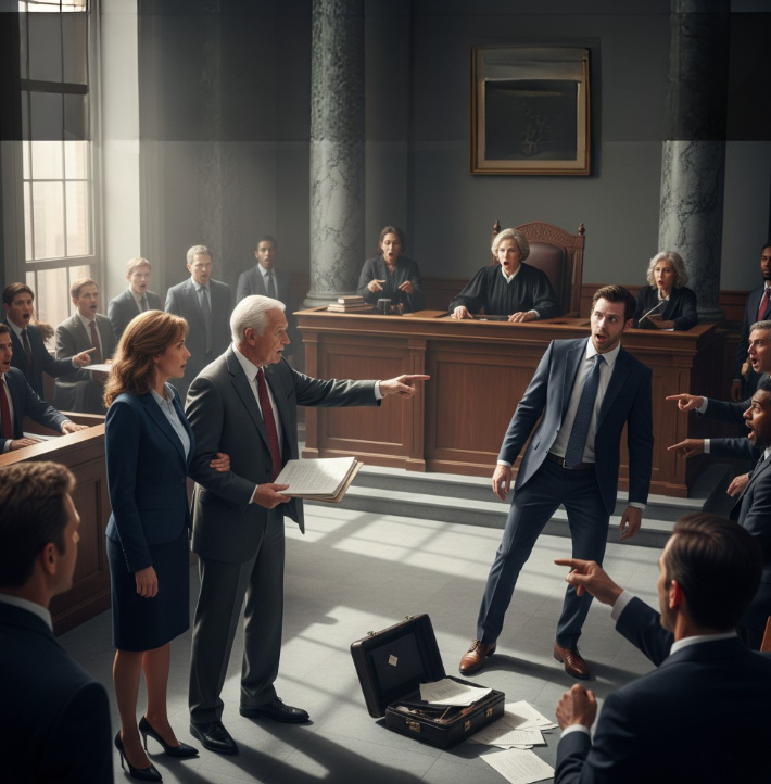 Stał w otoczeniu swojego zespołu prawników, ubrany w idealnie skrojony garnitur wart kilka tysięcy dolarów. Śmiał się, wyraźnie zadowolony z siebie, jak człowiek, który już wygrał.