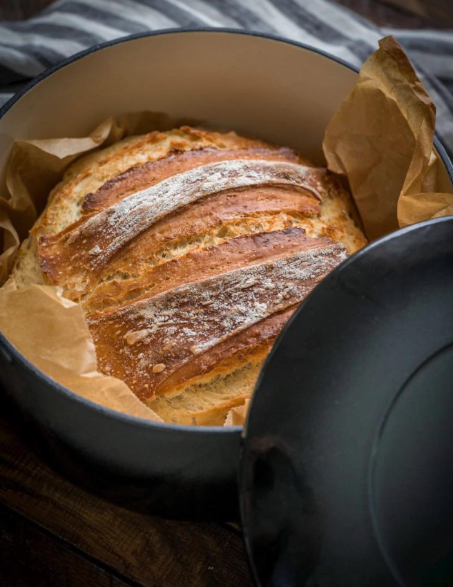Ten przepis powstał na bazie ulubionych, kalljästowanych bułek, które zostały przerobione na jeden duży bochenek pieczony w żeliwnym garnku. Pieczenie w zamkniętym naczyniu pozwala zatrzymać parę wodną, co daje efekt idealnie wyrośniętego chleba z chrupiącą skórką bez konieczności używania pary w piekarniku.