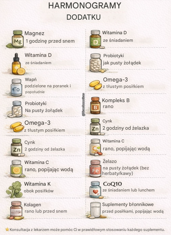 Poniżej znajdziesz krótki, uporządkowany i łatwy do zastosowania przewodnik, który pomoże Ci przyjmować suplementy w sposób bardziej świadomy, bez chaosu i wątpliwości.